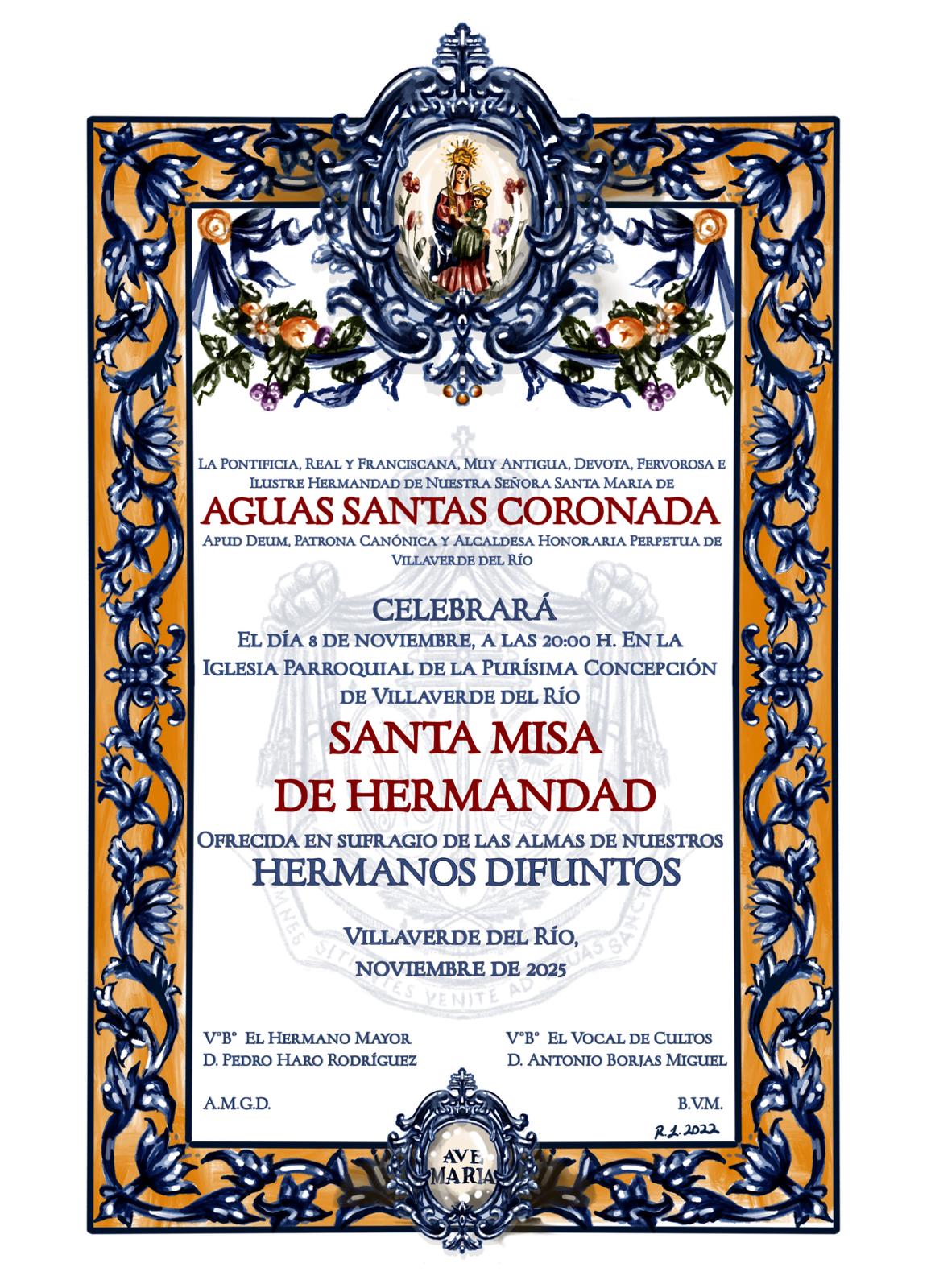 Este sábado 8 de noviembre, tal como indican nuestras reglas, a las 20:00 h, esta Hermandad celebrará Santa Misa en sufragio de las almas de nuestros hermanos difuntos.